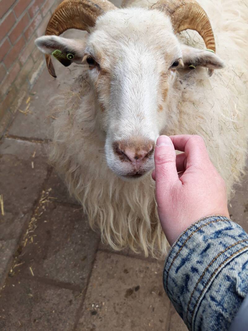 Als ik bij de schapenweide bezig ben komen de schapen graag even een aai halen!